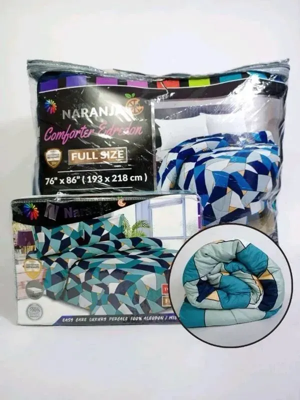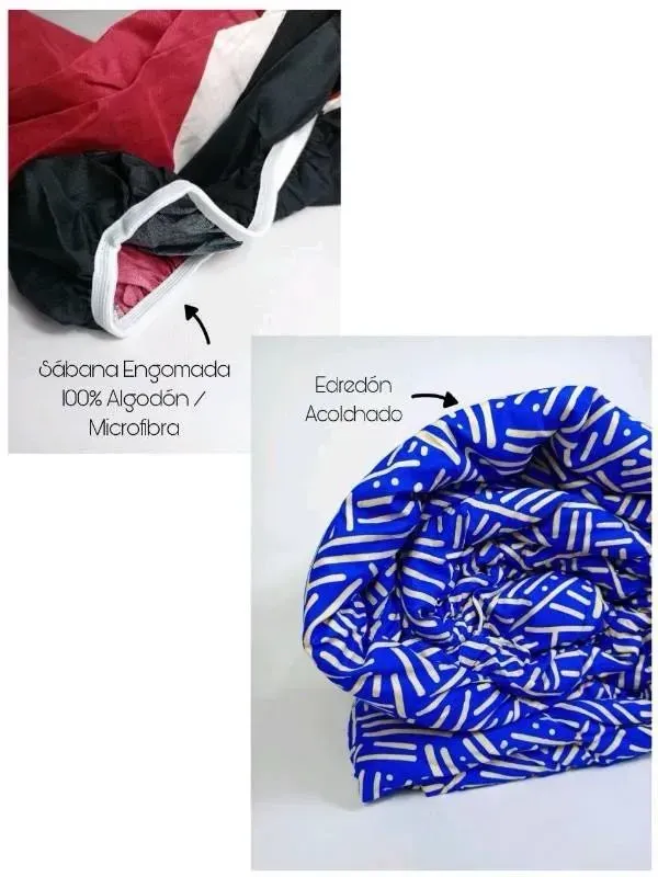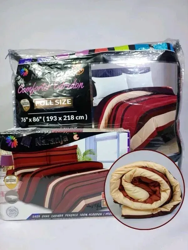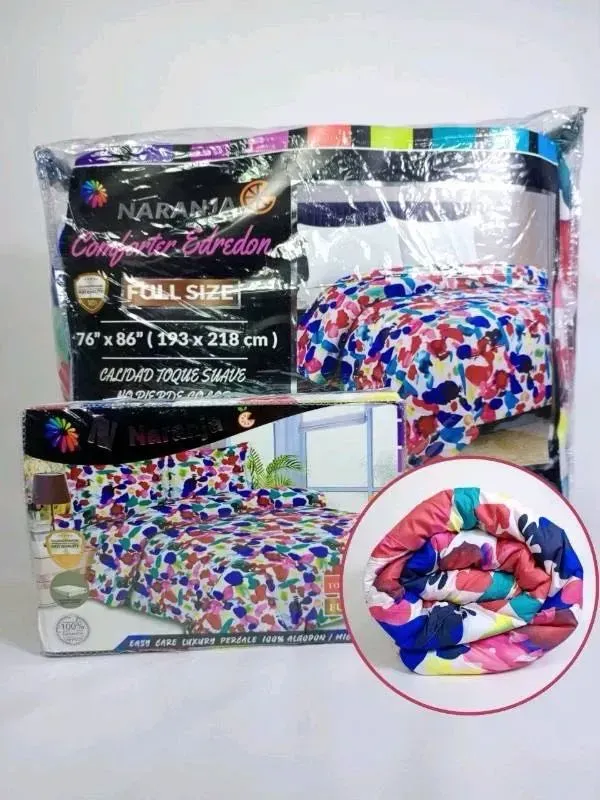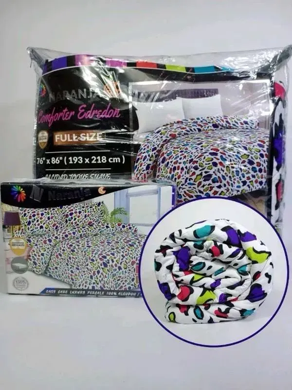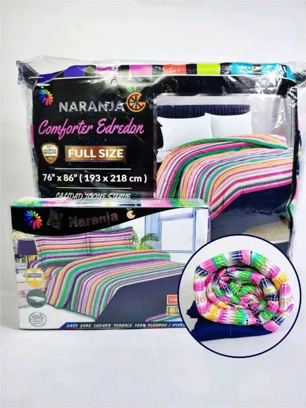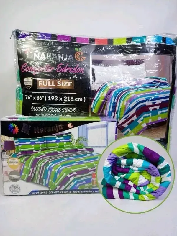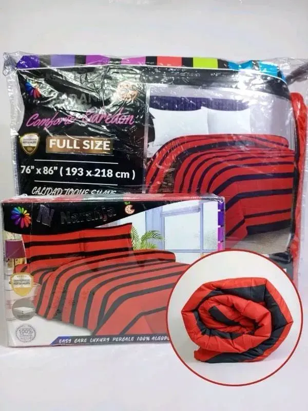 Contiene 5 Piezas, Sábana Plana (203x228cm), Sábana Ajustable (137x190+30cm) 2 Fundas (50x76cm), Edredón (193x218cm) Acolchado, Sabana Engomada Abarca Colchón Doble Pillow, Completamente Engomada, T...