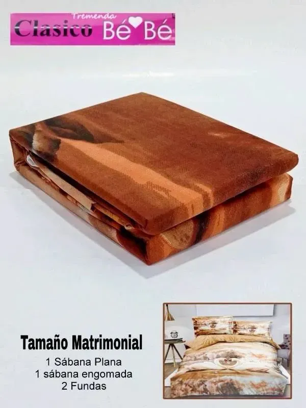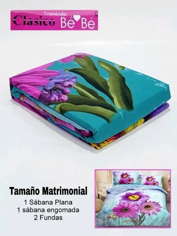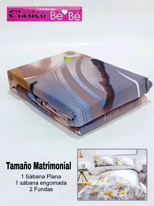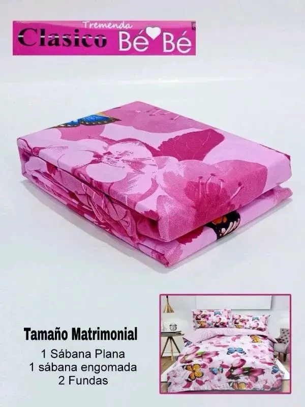 Contiene 4 Piezas, Sábana Plana (203x229cm), Sábana Ajustable (138x186+21cm) 2 Fundas (50x75cm), Completamente Engomada, Textura 100% Algodón